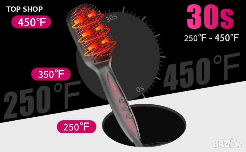 Автоматично заключване на температурата. Четка с висока плътност, подходяща за всички типове коса, като вълнообразна или фина коса, след което намалява хвърчането и статиката.