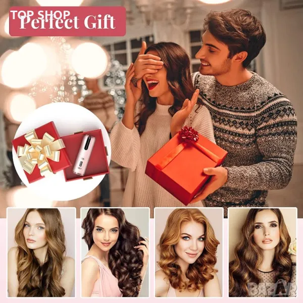 Безжична маша за къдрици, преносима автоматична маша, 6 температури и таймер, LCD дисплей, USB кабел