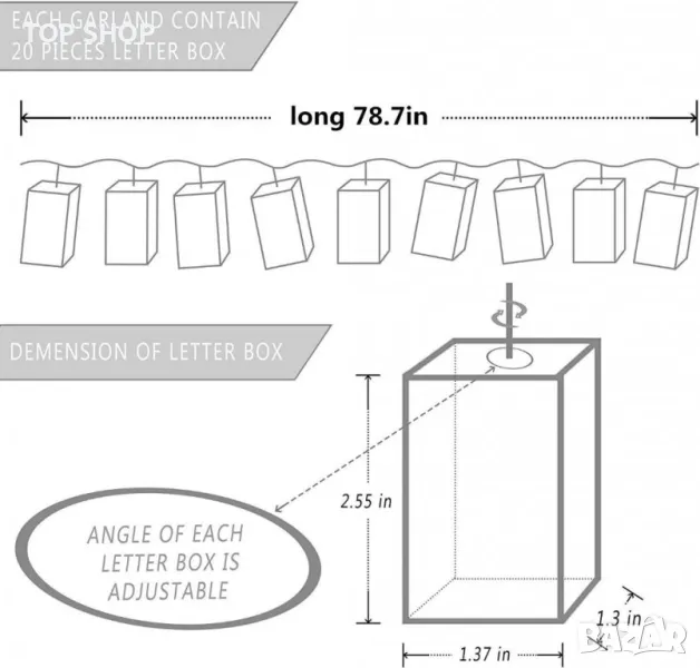 Светлинна верига от 20 кутиики + букви и цифри Seddex LED