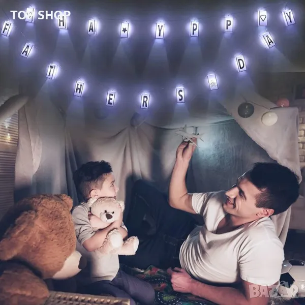 Персонализиран банер за рожден ден на Деня на бащата Тази многофункционална лампа за низ може да изписва много думи, банер Честит рожден ден, което прави светлинния комплект забавен и вълнуващ! Персонализирана неонова светлина, която може да отнеме няколко секунди за регулиране на ъгъла на пощенската кутия, за да получите по-добър ефект на дисплея