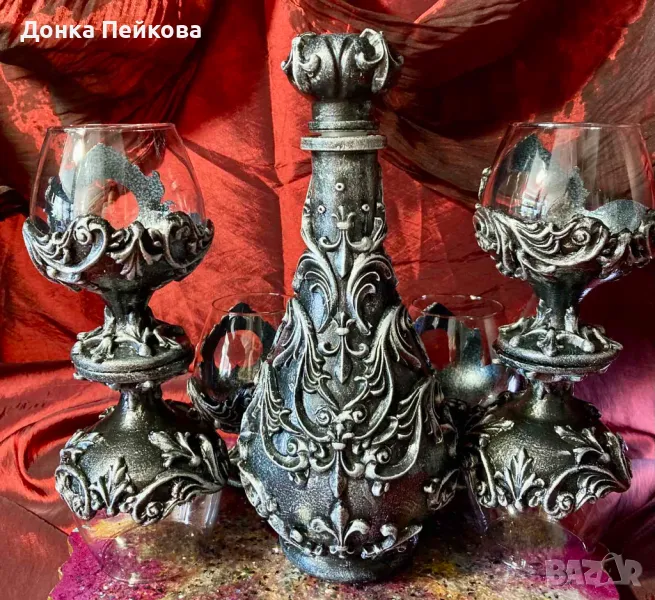 сервиз от 6 чаши за коняк и гарафа .Към сервиза може допълнително да се направи и декорирана кутия - 35 лв