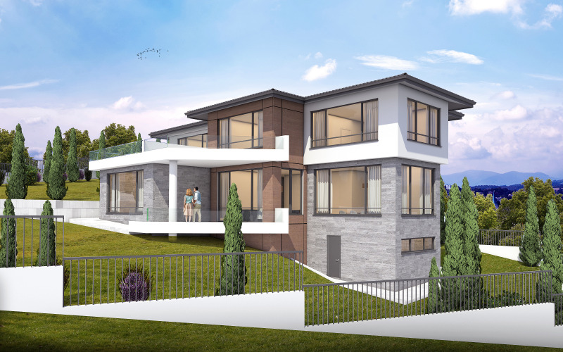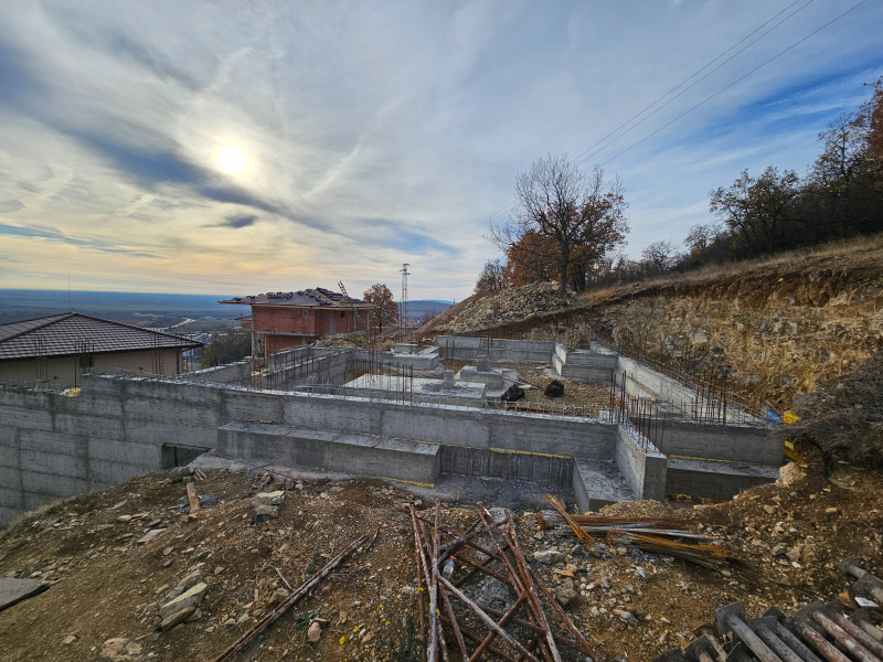 Предлагаме ви в новоизграждащо се вилно селище в Богомилово парцел от 1654 кв.м. и къща с РЗП 384кв.м.(+ 50 кв.м. приземен етаж с панорама за фитнес,механа....и др).Имота е с югоизточно изложение и прекрасна панорама.
