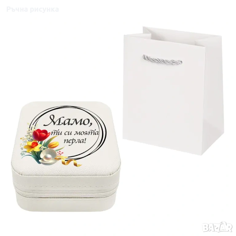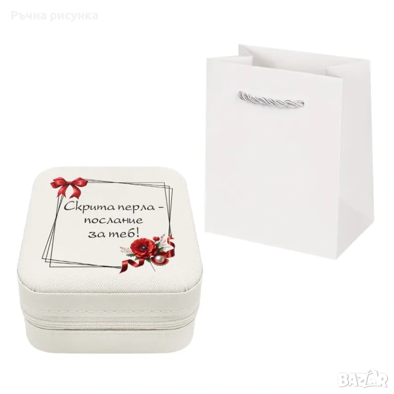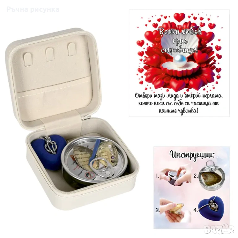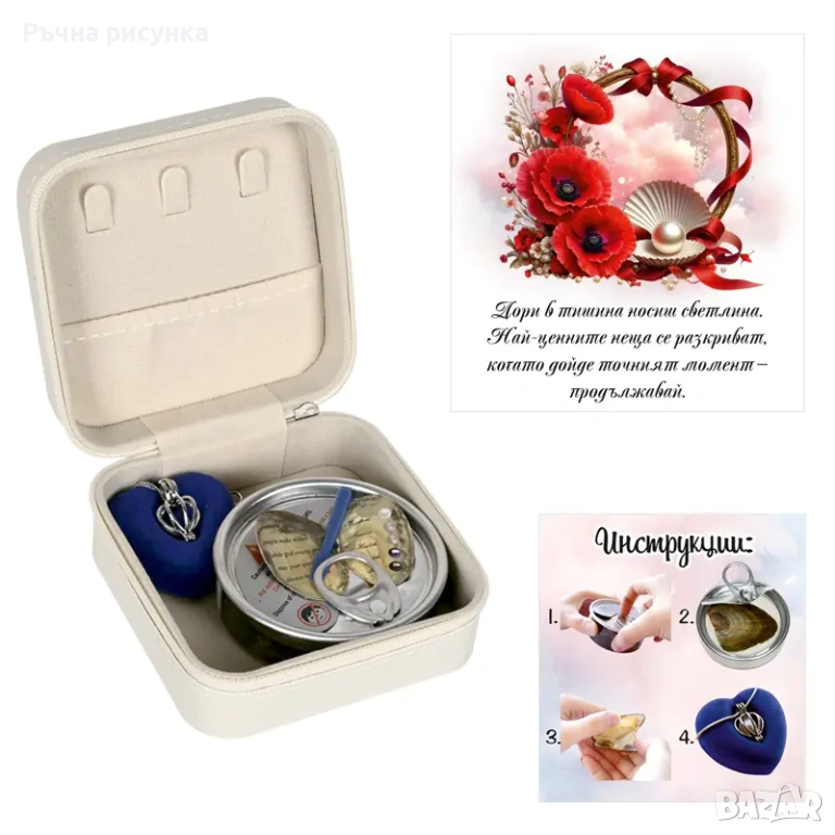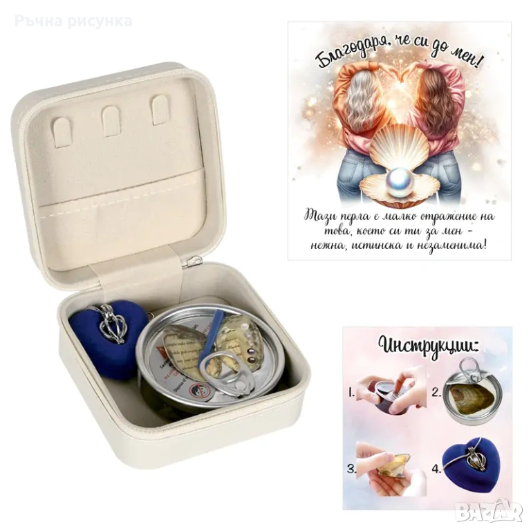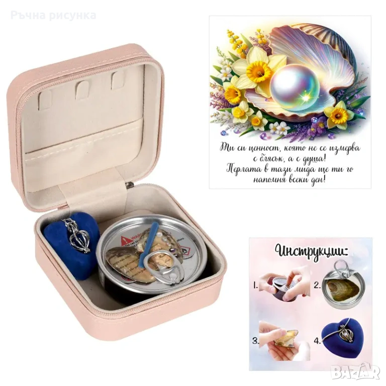 Бижутерка с послание и перла в мида в подаръчна торбичка /еко кожа/.
