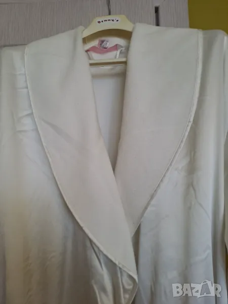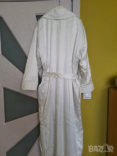 Бял сатенен халат с топла подплата Victoria Secret, с колан и вътрешни джобове, размер М-L до XL за висока фигура. Купуван от чужбина, обличан еднократно, изпран и прибран в торбичка. Отговарям на съобщения тук, изпращам с куриер с отстъпка, преглед и тест, или лично предаване в София.