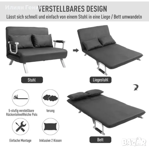 ✔ Двоен диван, който се превръща в разтегателен диван