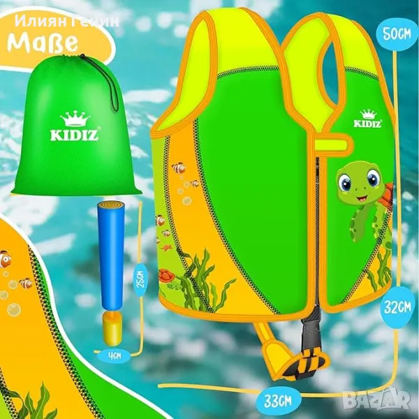 Високо качество: спасителната жилетка KIDIZ има подвижни поплавъци, които позволяват индивидуалното й регулиране според плувните умения на вашето дете. Тези поплавъци могат да бъдат премахнати или добавени според нуждите за регулиране на баланса и плаваемостта. Това позволява жилетката да се регулира, докато детето ви напредва, докато се учи да плува и се чувства по-уверено във водата.