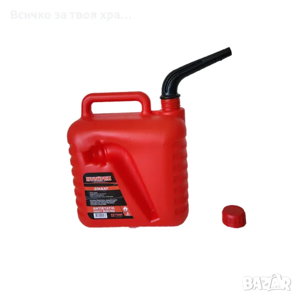 Пластмасова туба за бензин или дизел със вместимост 5 литра. Към тубата има удобен пластмасов накрайник, който се завива към тубата и създава удобство за наливане в резервоара.