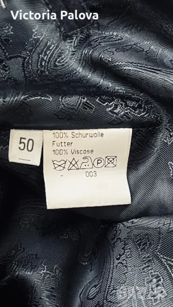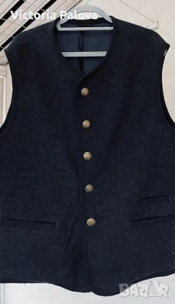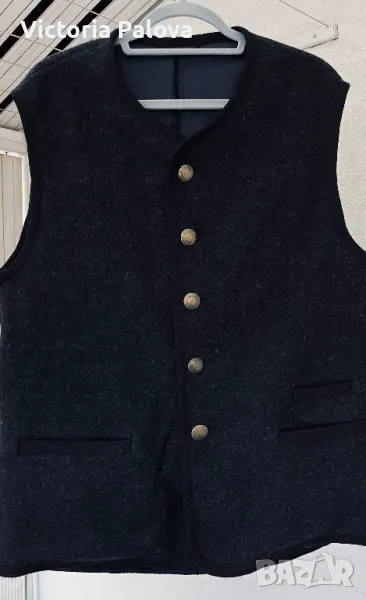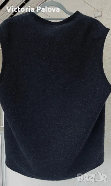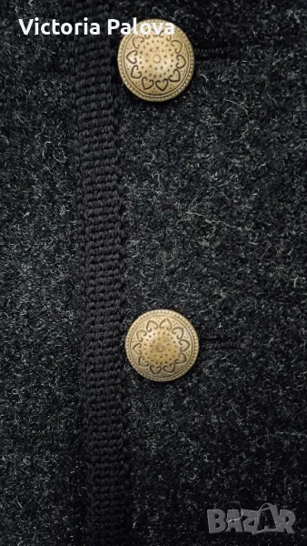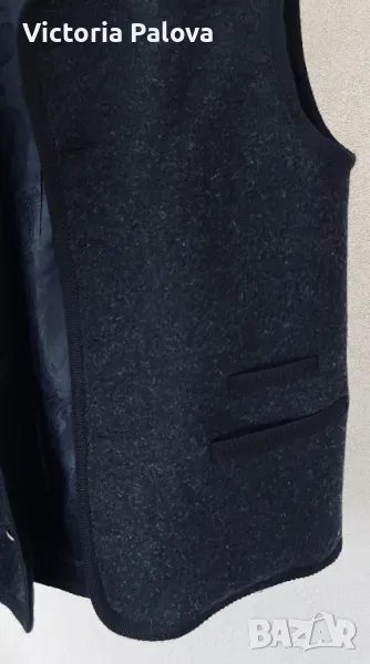 Много красива качествена стилна дреха, прекрасна кройка и изработка, красиви джобове, подплата пейсли, метални копчета. Брандът е световноизвестен и е много скъп, луксов, изработва продуктите си с особено внимание към детайли и ненадминато качество. Елекът е с мъжко закопчаване, но може да се ползва и от жени. Рамо - 48см, ГО - 58см, дължина - 72см.