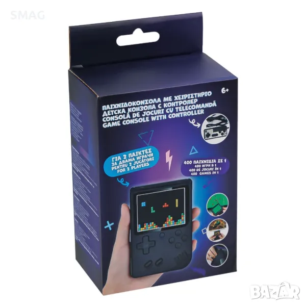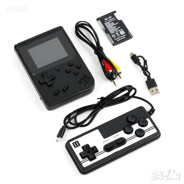 Конзола за видеоигри в черно, с 400 игри за 2 играча. Има вградена литиева батерия с голям капацитет от 1020mAh. След всяко пълно зареждане времето му на работа е 6-8 часа. Можете да го вземете със себе си, където пожелаете. Поддържа 2 играча и се свързва с телевизор. Перфектен подарък за деца и възрастни. Пакетът съдържа 1 игрова конзола, 1 акумулаторна батерия, 1 AV кабел, 1 кабел за зареждане и 1 контролер.