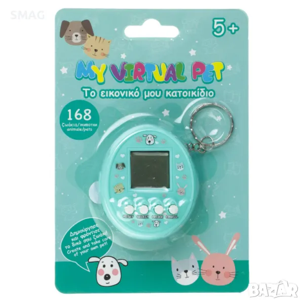 Конзола "Моят виртуален домашен любимец" със 168 животни и ключодържател. Създайте и се погрижете за вашия собствен домашен любимец! Работи с 2 батерии LR44 (включени и сменяеми).