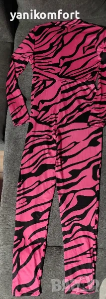 Елегантен раиран гащеризон с дълъг ръкав, еластична материя. Размер отговарящ на С-М.