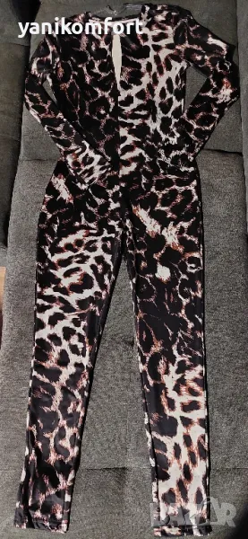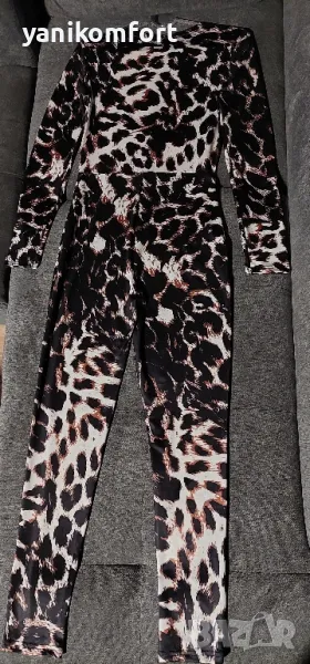 Шикозен гащеризон с дълъг ръкав, леопардов принт, еластична материя. Размер отговарящ на С-М.