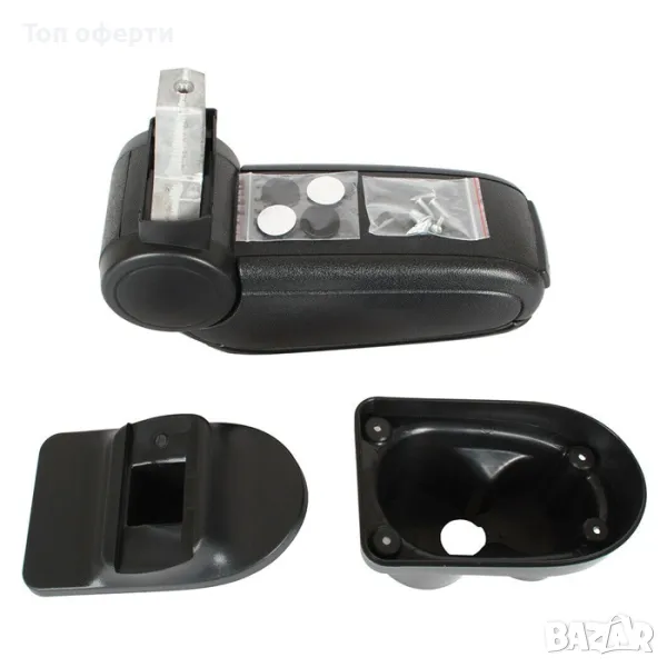 В комплекта са включени видии и болт за сглобяването на подлакътника с пластмасовата поставка, но няма елементи за закрепването към централната конзола.