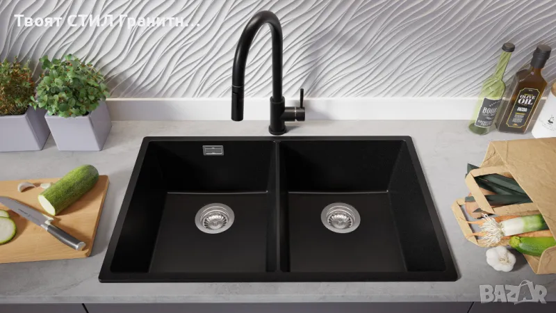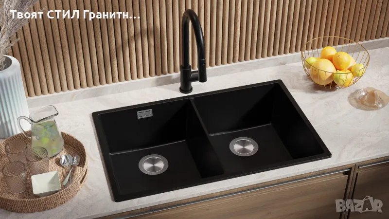 Черна Гранитна мивка с две корита за под плот Лондон 80 Twin - модерно и стилно решение за всяка кухня