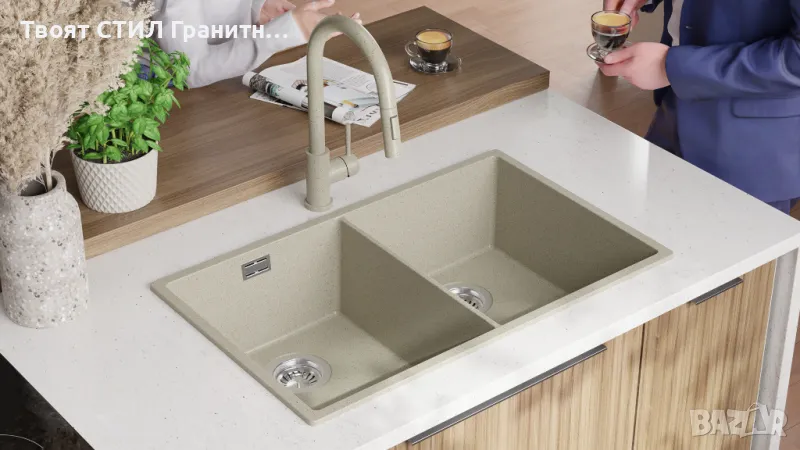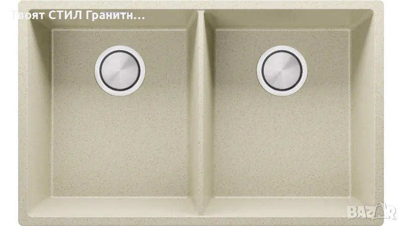 Беж гранитна мивка с две корита за вграждане под плот Лондон 80 Twin 760 x 470 мм