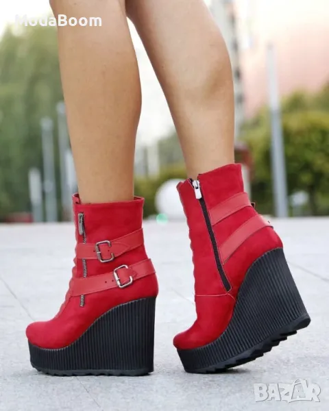 Боти на платформа - Велур