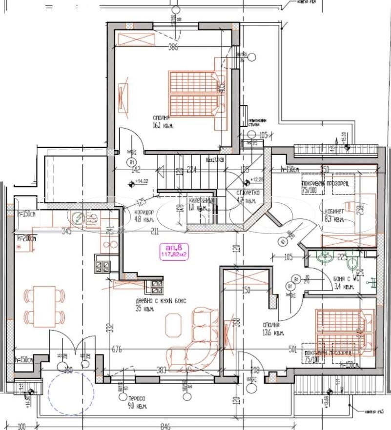 Предлагаме Ви голям и просторен апартамент в новострояща се кооперация в района на ЛК Тракия. Жилището е разположено на 6-ти етаж, има асансьор и е единствен апартамент на етажа. На площ от 118 кв.м. има следното разпределение: голям дневен тракт с кухненска бокс - 35 кв.м, две спални, кабинет, килер, баня с тоалетна, тераса. Прилежащо избено помещение. Възможно е преустройство в апартамента за постигане на две санитарни помещения. Жилището ще бъде издадено по БДС с четирикамерна PVC дограма и блиндирана входна врата. Луксозно завършени общи части. Сградата е пред АКТ 14, срок на завършване края на 2025 г. Възможност за закупуване на гараж. Районът е в близост до търговски обекти, училища и детски градини, спирки на градския транспорт. Оферта 2666.