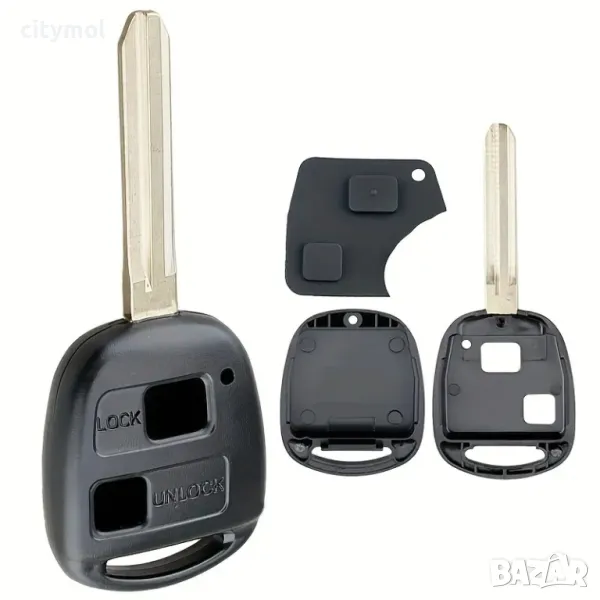 Кутийка за ключ с два бутона за ключ за Toyota. Включени гумени резервни копчета и 2 бутона за замяна.