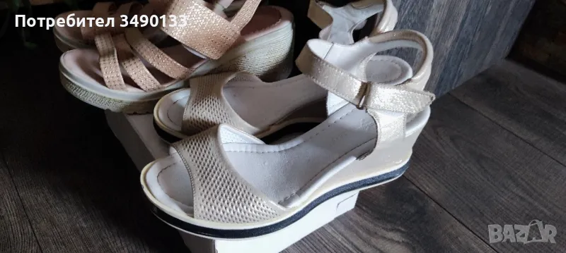 Сандалите са обувани по 1-2 пъти, абсолютно запазени.Светло бежавите са 40 размер, другите са 39 номер.