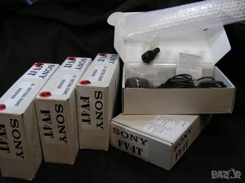 модел FV4T. Оригинално японско производство са. Микрофоните са използвани. Прегледани, измерени, сервизирани и опаковани са в специализиран сервиз в Берн – Швейцария. Отговарят честотно на заводските си норми. Всеки микрофон е с кабел, завършващ на голям - 6,3 мм моно жак. Микрофоните и кабелите са сиви. В комплекта на всеки микрофон има микрофон, държач „Sony“ SAD 23 – 25 с резбови адаптер, кутия за съхранение и мек калъф за микрофона . Ползвани са грамотно като репортерски микрофони в немската ZDR. Корпусът им е пластмасов и имат малки драскотини от употреба. Като модел, микрофоните фабрично имат вградено в корпуса ключе за „окъсяване“ - изключване, но без брум от "отворен вход". В главите им, под металната мрежа,има вграден дифузьор на въздушна струя – ветробран. Като цяло микрофоните не са нещо специално. Техническите им данни са изписани на кутията за съхранение . Има ги и на една от приложените към обявата снимки. Микрофоните са предвидени да вършат работа , както у дома така и на вън за професионални цели. Това , че микрофоните са използвани е отразено в цената им. Предлагам и нов микрофон от същия модел в обява под почти същото име , тук в Базар. Работя с „Еконт“.