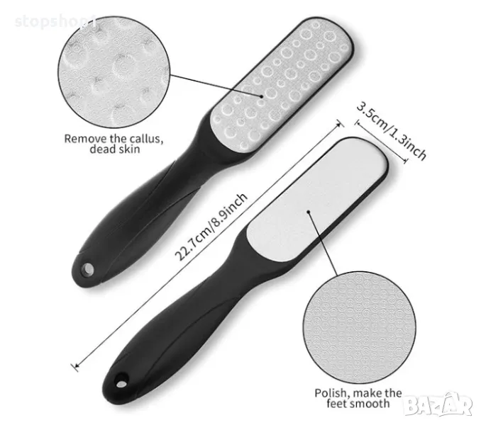 Висококачествени материали: Изработен от устойчива на ръжда първокласна неръждаема стомана и абразивна хартия, може да се пере и използва многократно. Безопасно и безболезнено премахва мазоли и напукана кожа от краката и тялото, като спомага за ексфолирането.
