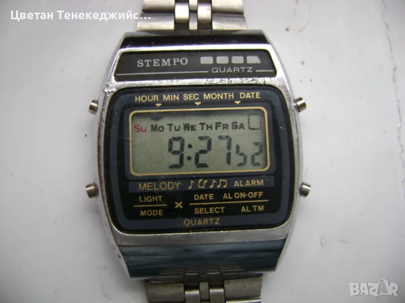 4.Кварцов часовник Stempo.Работи точно.Няма подсветка и не свири.Оригинална метална верижка.-20лв.Продаден.