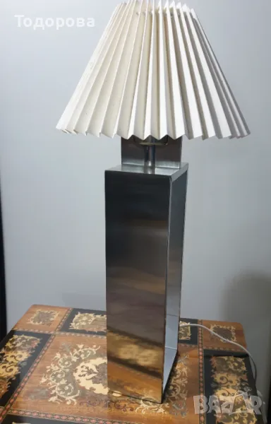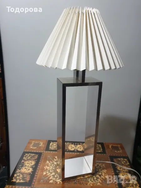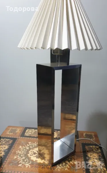 Настолна дизайнерска лампа.Корпус от масивен огледално полиран алуминий.Обща височина - 53 см.