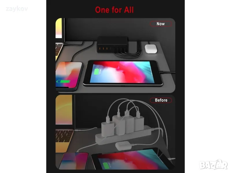 •Множество USB зарядни устройства с 8 порта: Нашите множество USB зарядни устройства имат четири USB-A порта и четири порта Type-C, с които можете да зареждате до осем устройства едновременно. Независимо дали става дума за телефон, таблет или превключвател, това USB C зарядно може да се справи с всички тях и да поддържа устройствата ви заредени и готови за използване, за да можете да се справяте ефективно с ежедневните си задачи.