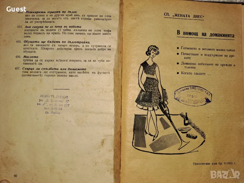 Сборник от 404 домакински указания от 1936 г. / СП "Жената Днес" В помощ на домакинята → Обява 48667971