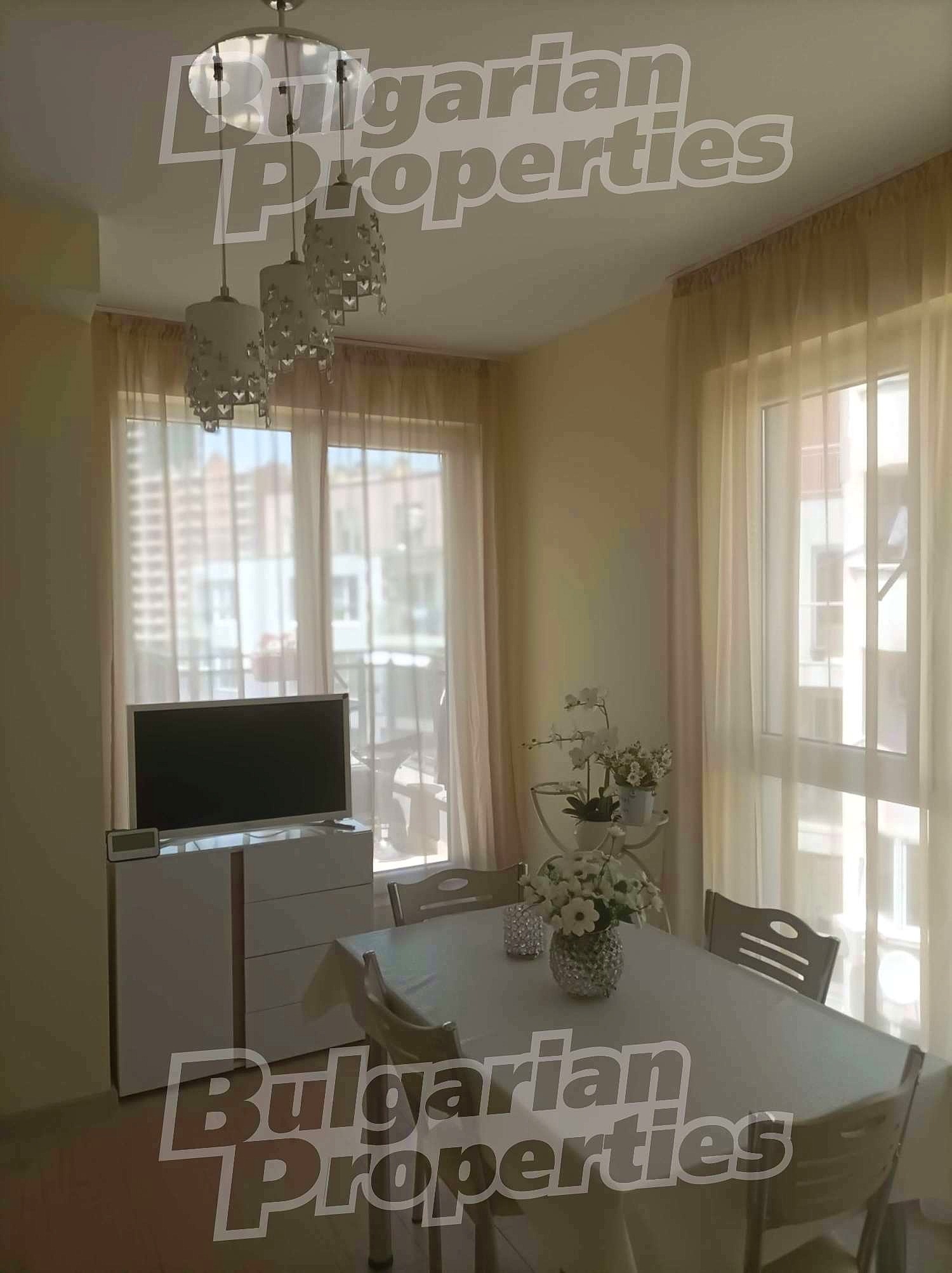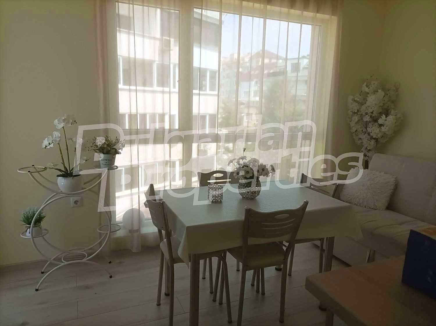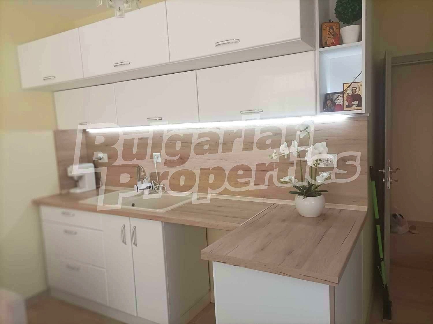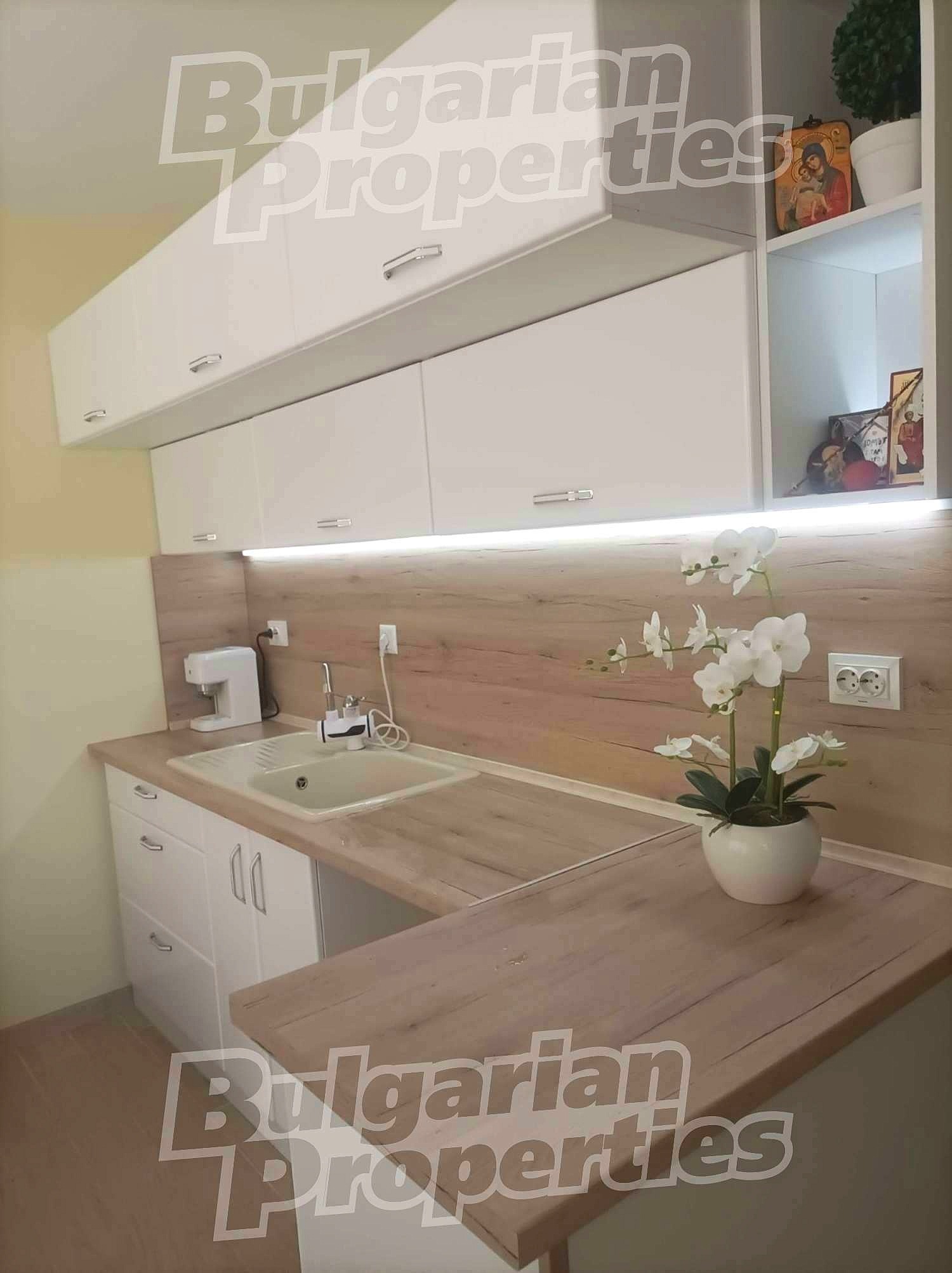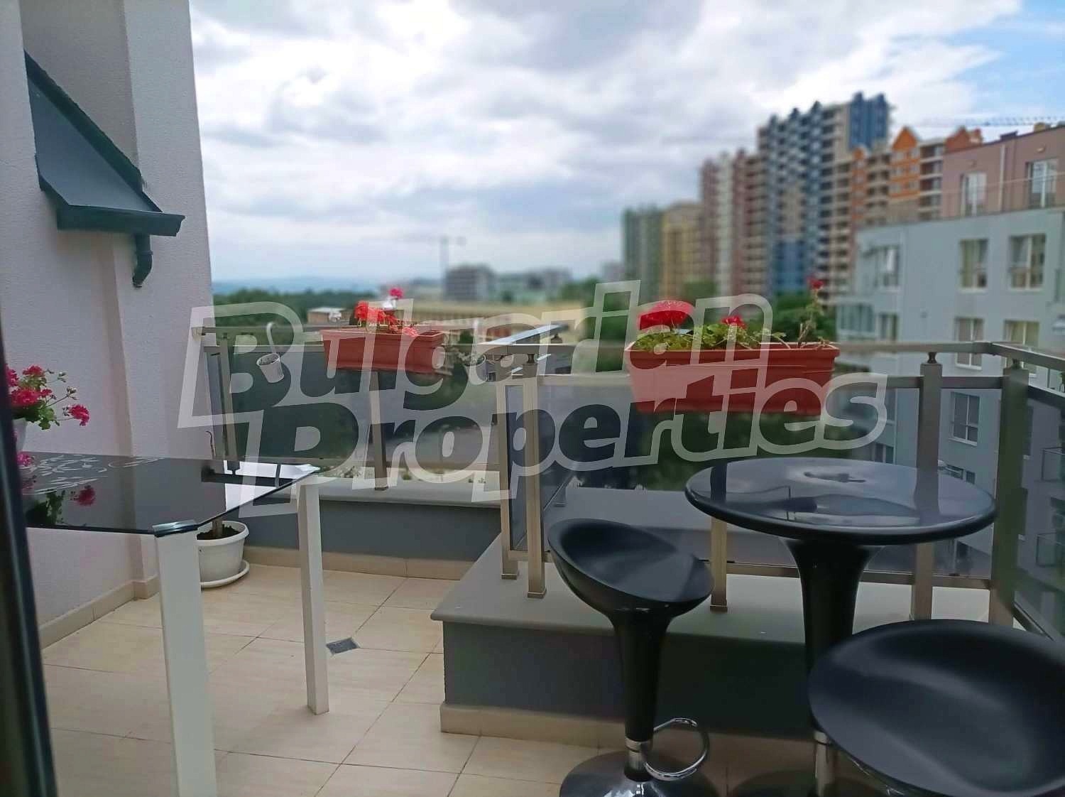 Подовите настилки са с ламинат. Имотът е напълно оборудван с ел. уреди и стилно обзавеждане, които може да разгледате на снимките. Има слънчево южно изложение и гледка към града. Отоплението и охлаждане са с климатици.