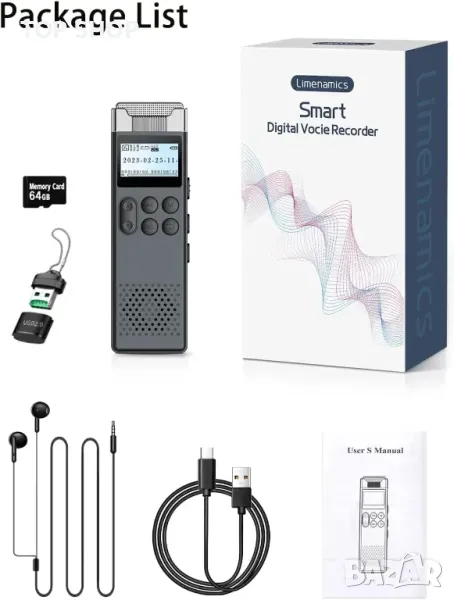 LIMENAMICS 80GB Цифров гласово активиран рекордер с възпроизвеждане