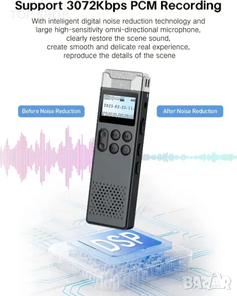【Кристално чисто качество на запис】Изпитайте изцяло ново ниво на качество на записа с професионалното съотношение на запис от 3072kbps и вградените стерео кондензаторни микрофони. Звукозаписващото устройство използва подобрена DSP мощна технология за намаляване на шума, динамичен микрофон за шумопотискане, звуково премахване и филтриране за различни среди, гарантирайки, че получавате ултра-ясни записи всеки път.