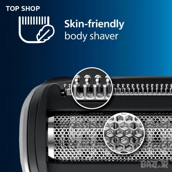Водоустойчив тример Philips Bodygroom Series 3000 - BG3010. Сега можете уверено да подстригвате и бръснете навсякъде по тялото си само с един инструмент. Този тример за цялото тяло Philips за мъже подстригва косата на 3 различни дължини за чисти, равномерни резултати по гърба, раменете, гърдите, корема, подмишниците, ръцете и краката. Проектиран да предпазва дори в чувствителни зони. Грумерът за мъжко тяло е проектиран да улавя къси, дълги и гъсти косми с едно движение. Главата на самобръсначката разполага с патентовани заоблени върхове и хипоалергенно фолио, за да предпази кожата ви от порязвания и нарязвания. Защитна грижа за цялото тяло. Предпазва кожата по време на бръснене или подстригване. Включен е 1 гребен за естествено подстригване от 3 мм. Прикрепете гребена към бръснещата система, за да подстрижете косата до фиксирана дължина от 3 мм. 50 минути безжична употреба след 8-часово зареждане. Използвайте върху мокра или суха кожа. Материал: Пластмаса/Метал. Цвят: Черен. Размери на опаковката: 14 x 23 x 7.5 см.