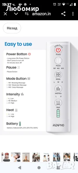 Електрически масажор за глава RENPHO с топлина, компресионна шапка за облекчаване на главоболие, акумулаторен масажор за скалп с 3 режима на масажна компресия за облекчаване на мигрена и главоболие, стресиращо.Компресионен масажор за глава: Електрическият нагревателен масажор за глава може да компресира и стисне главата ви, ще отпусне напрежението в главата ви.Нагряващ масаж и намаляване на напрежението на главата: RENPHO компресионен масажор за глава с 2 настройки на топлина(Вградените нагревателни подложки осигуряват удобни между 40 и 45 градуса (40℃-45℃), за да затоплят главата ви и около очите, по-добре за релаксация и главоболие.Нагряващ масаж и намаляване на напрежението на главата: RENPHO компресионен масажор за глава с 2 настройки на топлина(Вградените нагревателни подложки осигуряват удобни между 40 и 45 градуса (40℃-45℃), за да затоплят главата ви и около очите, по-добре за релаксация и главоболие.3 режима на компресия и 3 интензивности по избор: Масажорът за скалп на главата с помощта на преносимия ръчен контролер регулира режимите и интензитета, за да отговори на вашите нужди. 3 режима на масаж и 3 интензивности, симулиращи различни масажни техники, различни редуващи се сили позволяват на главата ви да получи дълбока релаксация. Съвети: Ако почувствате главоболие, моля, разхлабете лентата за глава по подходящ начин.Регулируема лента за глава, за да пасне на повечето размери: Този масажор за глава може да регулира размерите с помощта на велкро ленти, пасва на обиколка на главата до 54 см при минимум и до 70 см при максимум. Можете да масажирате не само главата, но и прасците, ръцете и около очите. Може ефективно да отпусне мускулната умора, да подобри кръвообращението, да намали сковаността на мускулите.