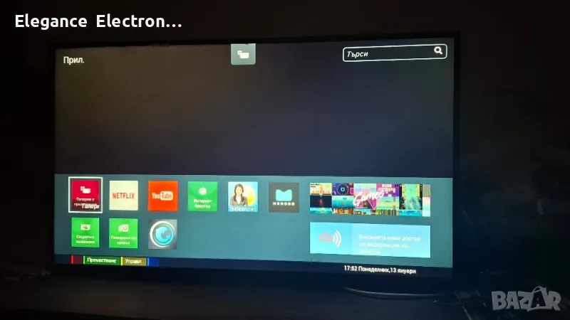 Продавам LЕDтелевизор 43.инча 108см напълно изправен и работещ .SMART TV - Youtube, Netflix и др. Предполага се, БЕЗ СТОЙКА . Има кутия и кжикки за експлоатация. За повече информация относно продукта не се колебайте да се свържете с мен пишете отговорям бързо или ми звънете на посечения номер от 8.00до 20.00ч. Възможност за лично предаване в гр Варна или изпращам по Еконт с 10 остъпка от куриерската услуга.
