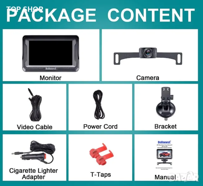 DoHonest Водоустойчива камера HD 1080P за задно виждане в комплект с монитор