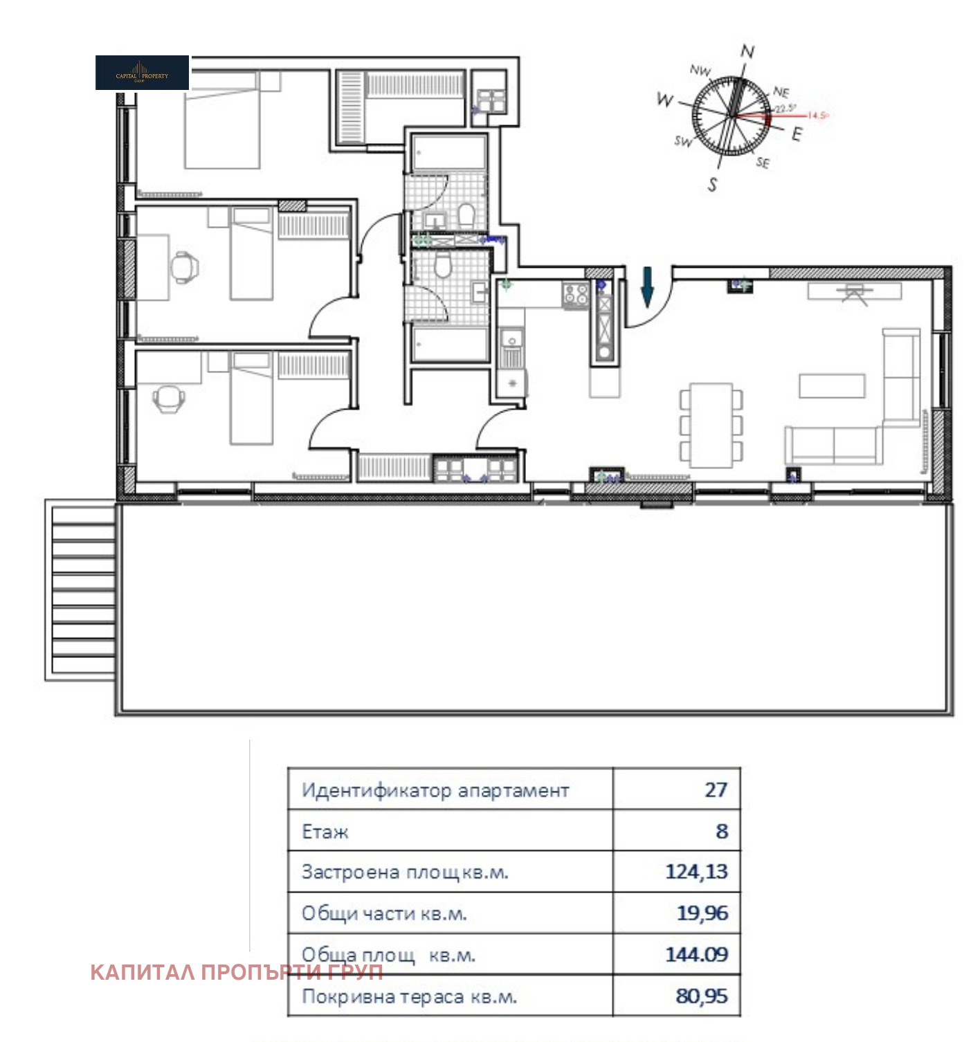 ☀ Покривна тераса: 80,95 кв.м.
