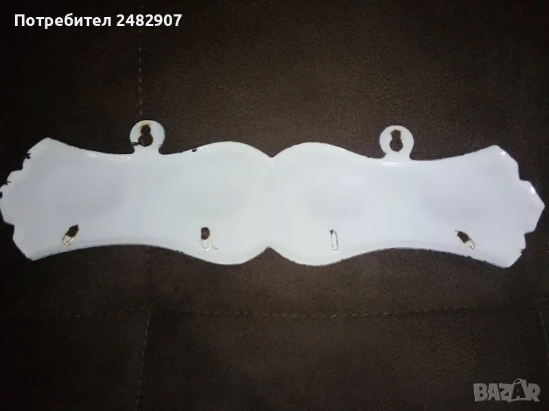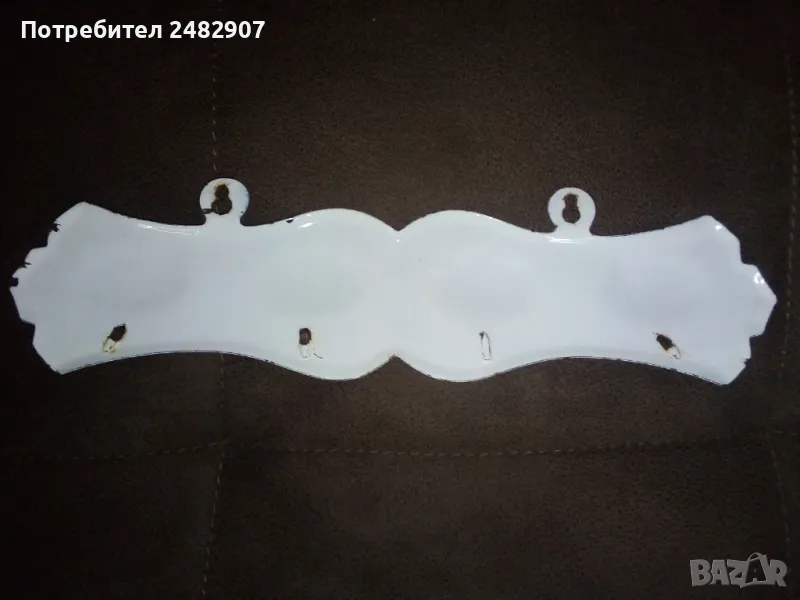 Стара емайлирана закачалка за кърпи. Размери - 8,5/36 см. Много запазена, с нормални следи от използване и забележки, видими от снимките.
