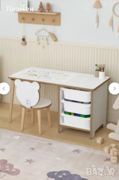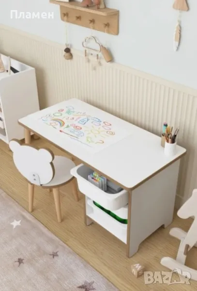 3. Минималистичен дизайн – масата и столчето са без излишни декорации, като се акцентира на функционалността.
