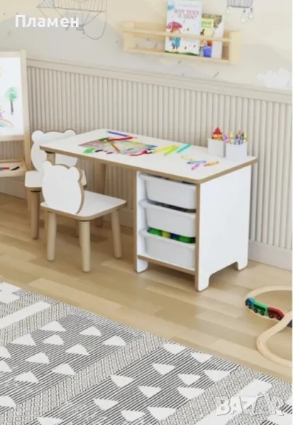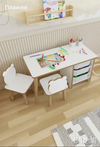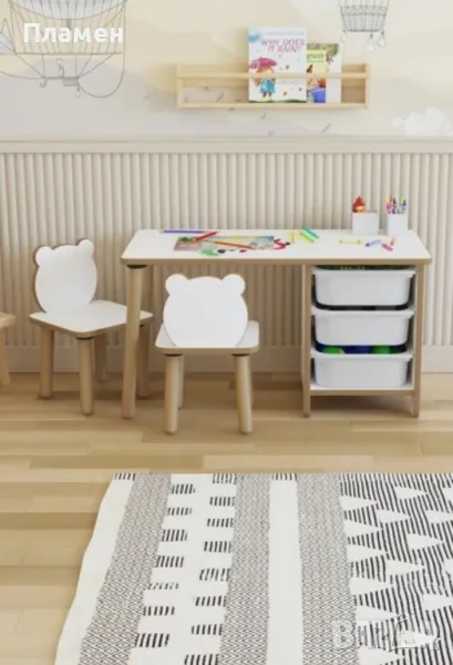 Детска маса с двe столчета Panda и рафтове