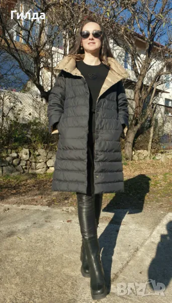 Страхотно яке с гъши пух с две лица - бежово и черно. Елегантен модел, носила съм го няколко пъти, но сега не ми допада.