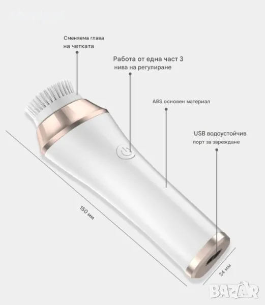 - Компактен и удобен дизайн - Минималистичният дизайн прави устройството лесно за носене навсякъде – в чантата ви за пътуване или фитнес. Тази четка е идеален партньор за ежедневна грижа за кожата у дома и в движение.