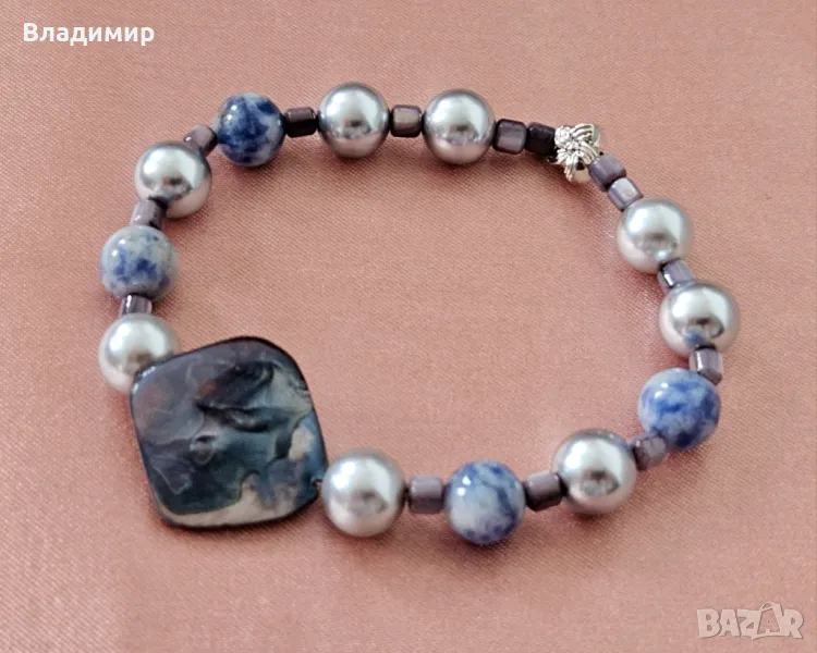 Гривна ръчна изработка със плочка седеф , перла и содалит , снимка 1 - Гривни - 48672622 Гривна ръчна изработка със плочка седеф , перла и содалит , снимка 2 - Гривни - 48672622 1/2