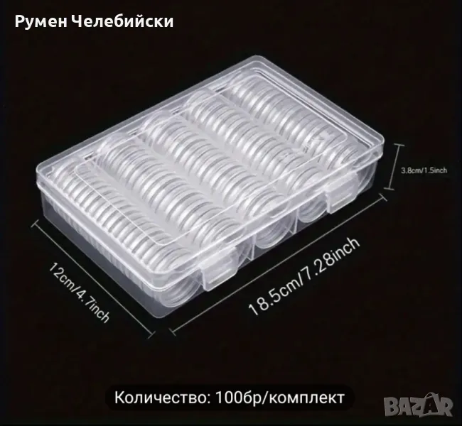 100бр капсули за монети с подложки, размерите са на снимките.