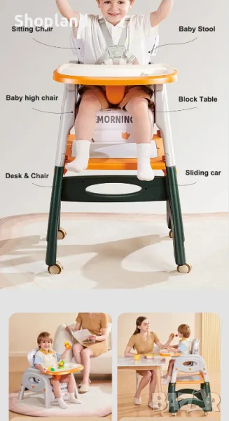Този многофункционален сгъваем детски стол за хранене 7в1 е перфектният избор за семейства, които искат продукт, който расте заедно с детето им и предлага удобство и разнообразие от приложения. Създаден за употреба от ранна възраст до 8 години, столът съчетава стилен дизайн и изключителна практичност.
