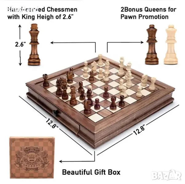 Представяме ви нашата Магнитна дървена шахматна дъска с чекмеджета – идеалният избор за любителите на шаха, търсещи компактност, качество и функционалност.
