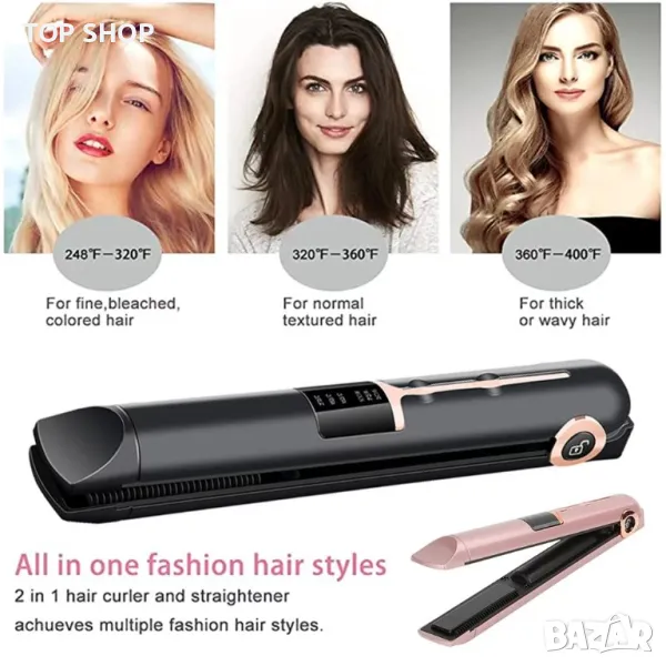 Акумулаторна 3-В-1 USB преса за коса, мини преносима безжична маша за коса,LED дисплей
