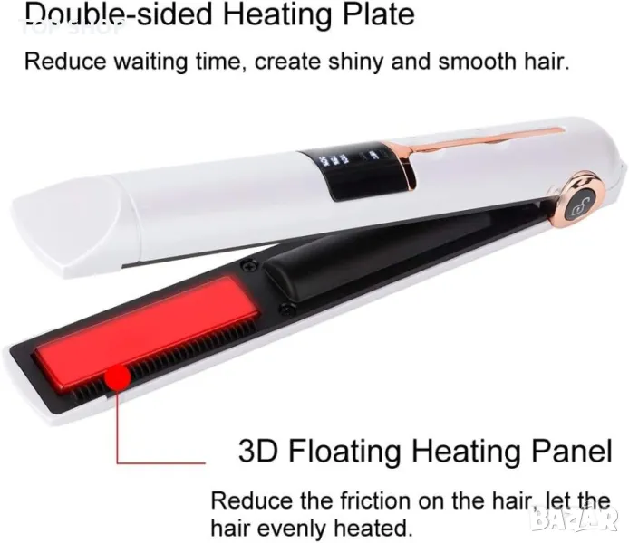 1. 3D плаващ нагревателен панел с керамична боя против изгаряне, която намалява увреждането на качеството на косата и е безопасна за използване.