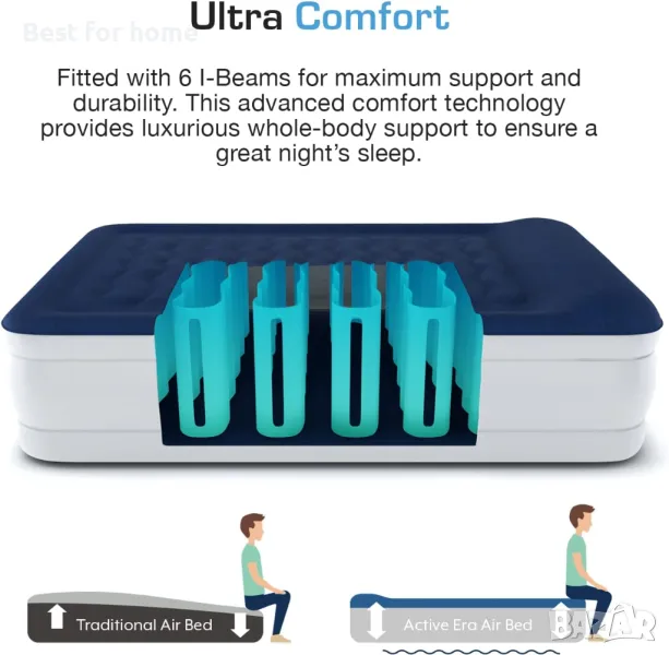 Луксозно надуваемо легло King Size Active Era - повдигнат надуваем надуваем матрак, вградена електрическа помпа, повдигната възглавница и структурирана технология I-Beam, височина 56 см