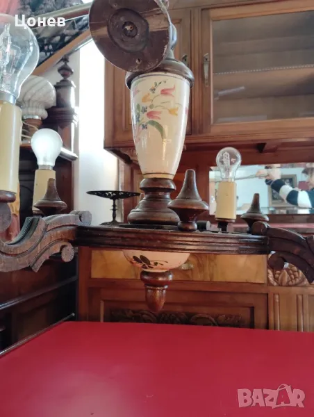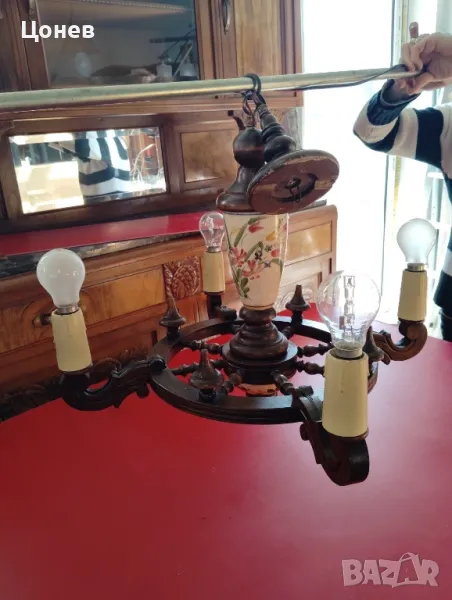 Полилей с 4 светлоизточника внос от Франция. Дърво и керамика